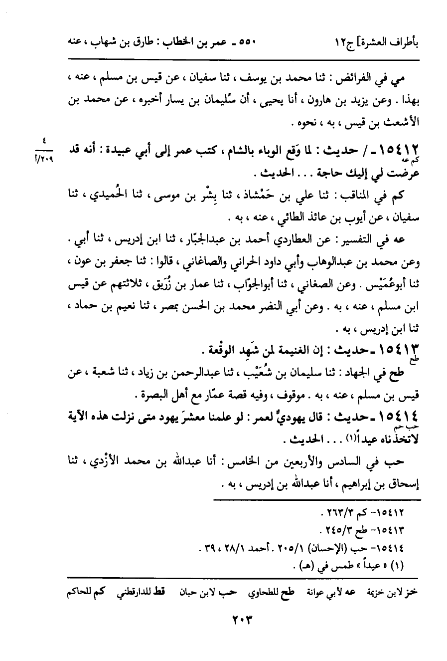 15414 - حديث (حب حم) : قال يهوديٌّ لعمر: لو علمنا معشرَ يهود متى نزلت هذه الآية لاتخذناه عيداً ... الحديث.