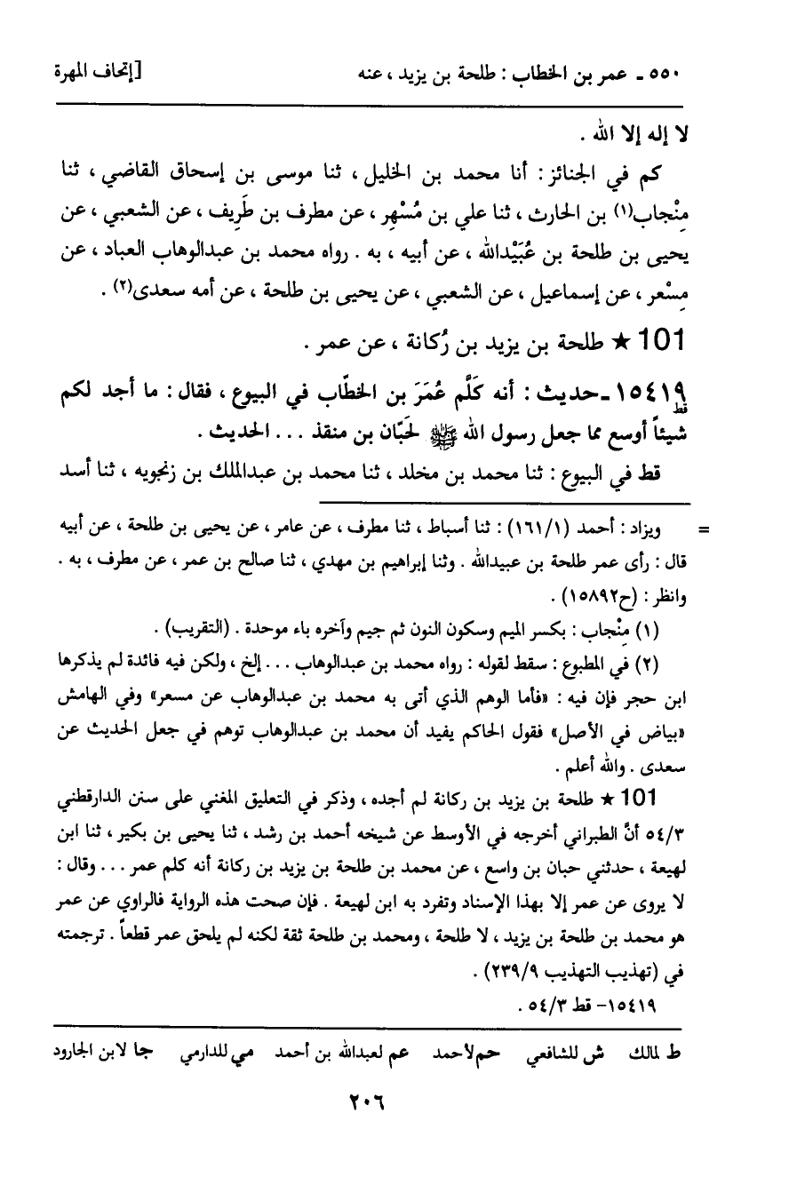ـ طلحة بن يزيد بن رُكانة، عن عمر.