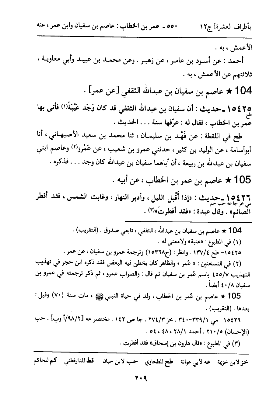 15426 - حديث (مي خز جا عه حب حم) : "إذا أَقْبل الليل، وأدبر النهار، وغابت الشمس، فقد أفطر الصائم". وقال عبدة: "فقد أفطرت".