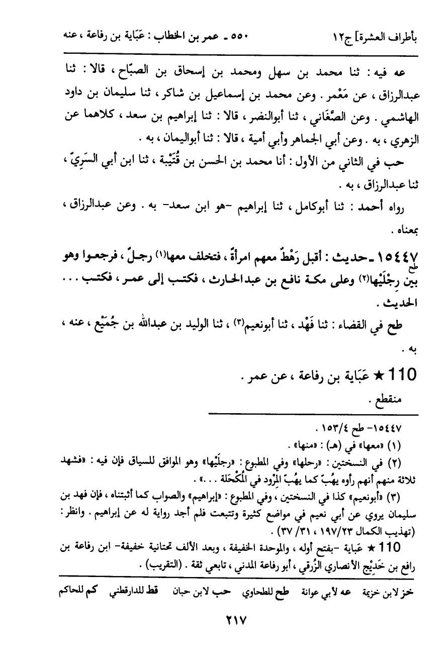 15447 - حديث (طح) : اقبل رَهْط معهم امرأة، فتخلف معها رجل، فرجعوا وهو بين رجْلَيْها وعلى مكة نافع بن عبد الحارث، فكتب إلى عمر، فكتب ... الحديث.