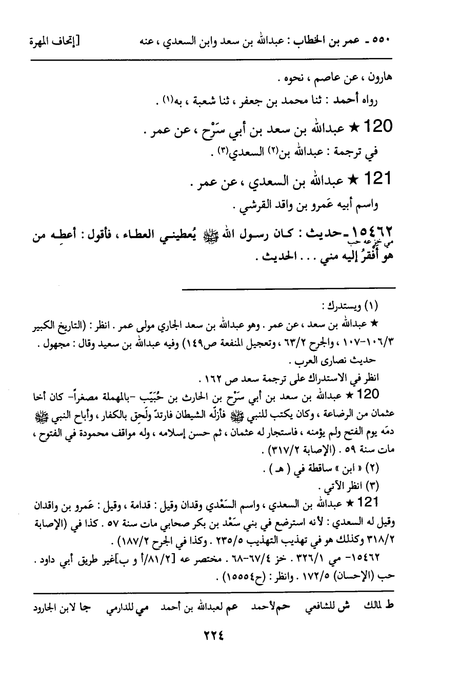 -[225]- مي في الزكاة: أنا الحكم بن نافع، عن شعيب، عن الزهري، عن السائب بن يزيد، عن حويطِب بن عبد العُزى، عنه، به. وعن أبي الوليد، عن الليث، عن بُكَيْر، عن بُسْر بن سعيد، عن ابن السعدي، نحوه.