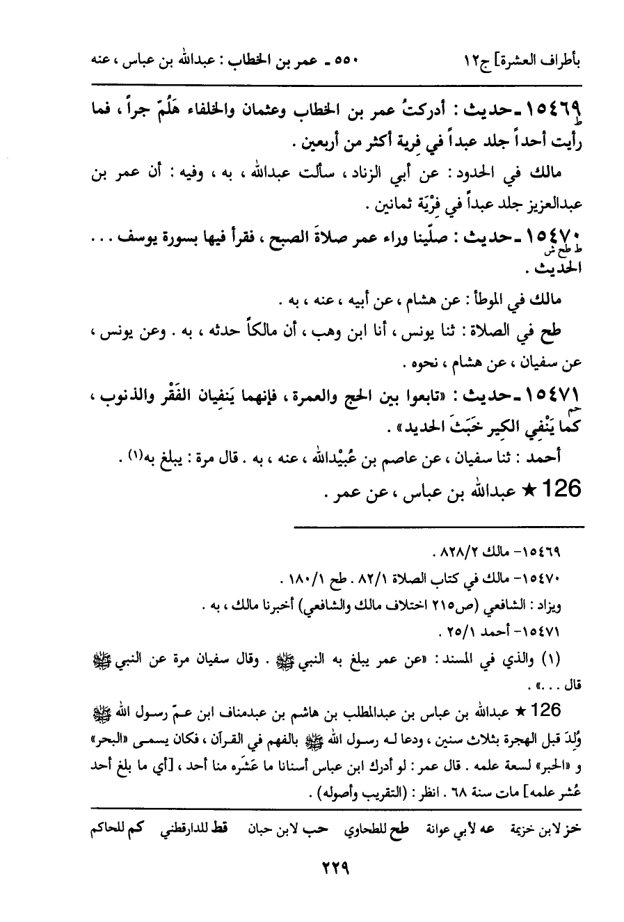 15470 - حديث (ط طح ش) : صلّينا وراء عمر صلاةَ الصبح، فقرأ فيها بسورة يوسف ... الحديث.