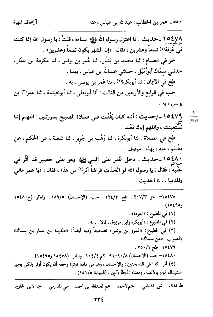 15479 - حديث (طح) : إنه كان يَقْنُت في صلاة الصبح بسورتين: اللهم إنا نسْتَعِينك، واللهم إياك نَعْبد.