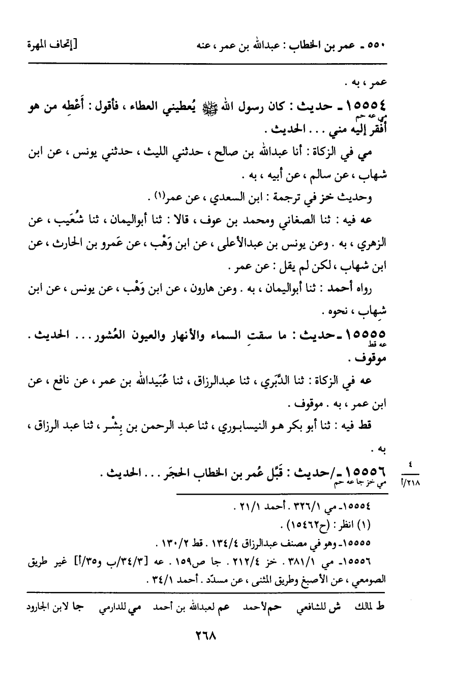 عه فيه: ثنا الصغاني ومحمد بن عوف، قالا: ثنا أبو اليمان، ثنا شُعَيب، عن الزهري، به. وعن يونس بن عبد الأعلى، عن ابن وَهْب، عن عَمرو بن الحارث، عن ابن شهاب، لكن لم يقل: عن عمر.
