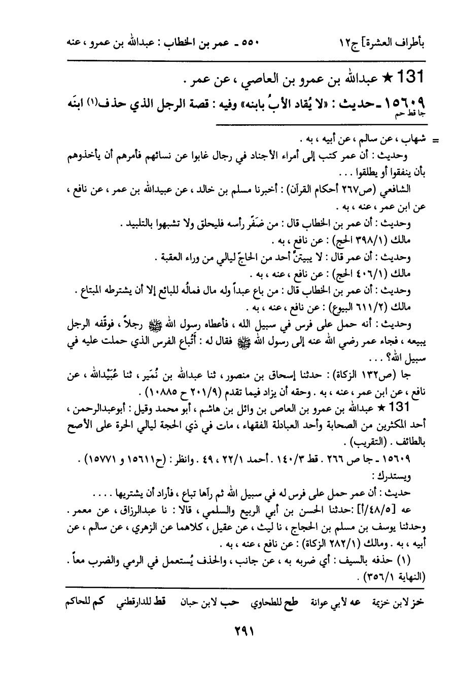 15609 - حديث (جا قط حم) : "لا يُقاد الأب بابنه" وفيه: قصة الرجل الذي حذف ابنه