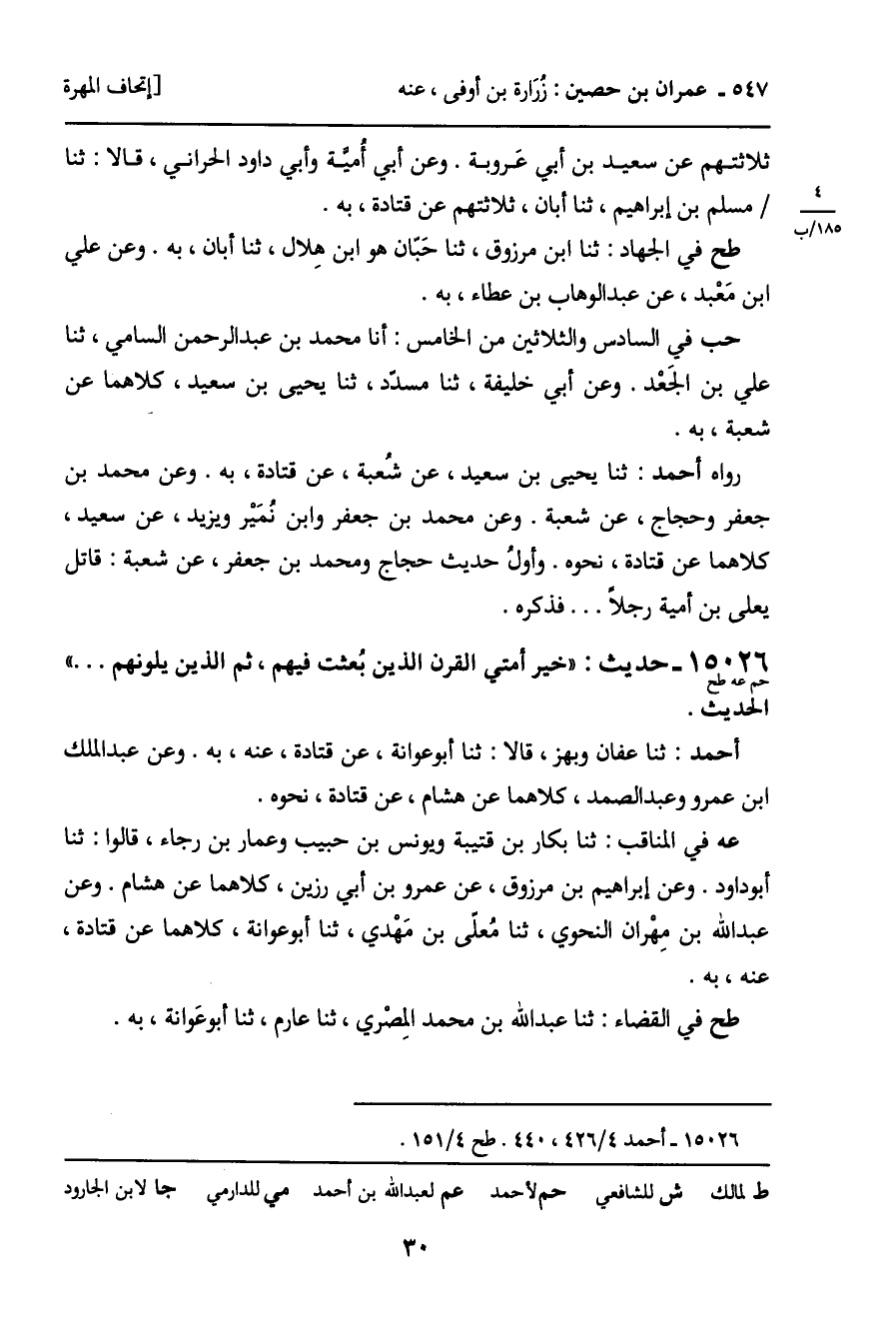 15026 - حديث (حم عه طح) : "خير أمتي القرن الذين بُعثت فيهم، ثم الذين يلونهم ... " الحديث.