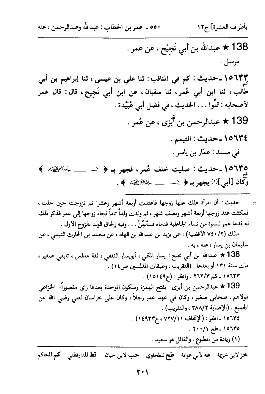 15635 - حديث (طح) : صليت خلف عُمر، فجهر (بسم الله الرحمن الرحيم) وكان [أبي] يجهر ب ـ (بسم الله الرحمن الرحيم) .