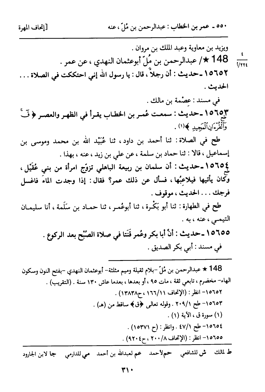 ـ عبد الرحمن بن ملّ أبو عثمان النهدي، عن عمر.