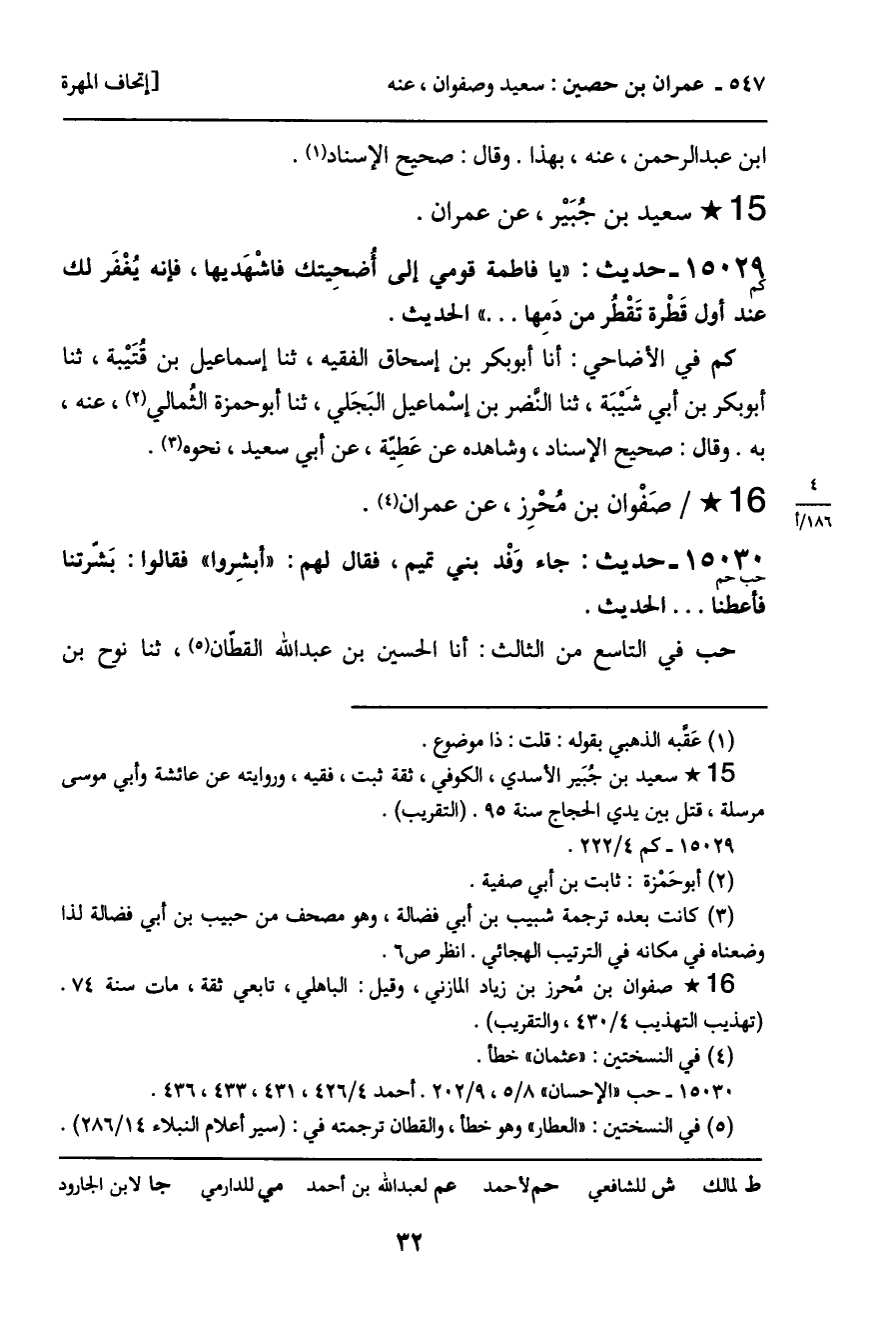 15029 - حديث (كم) : "يا فاطمة قومي إلى أضحِيتك فاشْهَديها، فإنه يُغفَر لك عند أول قَطْرة تَقْطُر من دمِها ... " الحديث.
