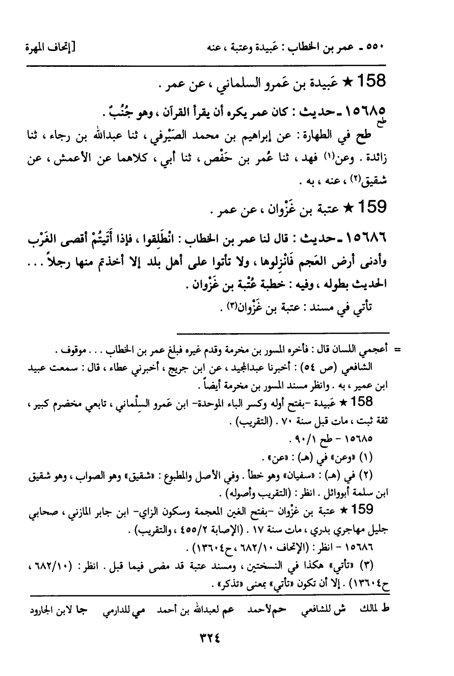 ـ عَبيدة بن عَمرو السلماني، عن عمر.