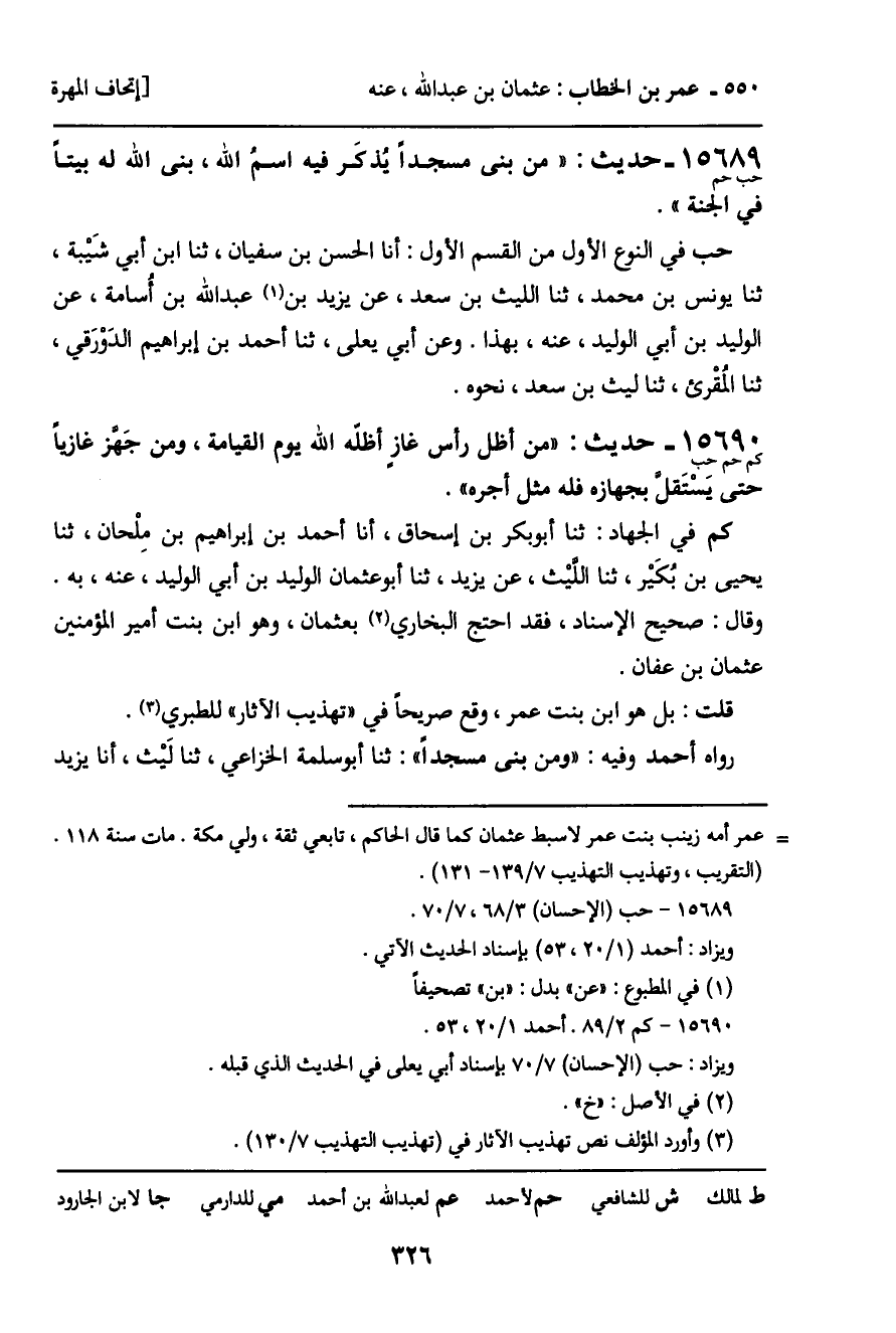 15689 - حديث (حب حم) : "من بنى مسجداً يذكر فيه اسم الله، بنى الله له بيتاً في الجنة".