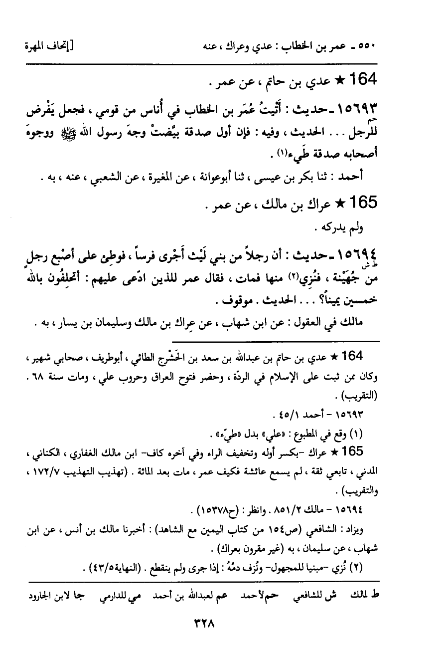 15693 - حديث (حم) : أتيت عمَر بن الخطاب في أناس من قومي، فجعل يَفْرض الرجل ... الحديث، وفيه: فإن أول صدقة بيضتْ وجهَ رسول الله - صَلَّى اللَّهُ عَلَيْهِ وَسَلَّمَ - ووجوهَ أصحابه صدقة طَيء.