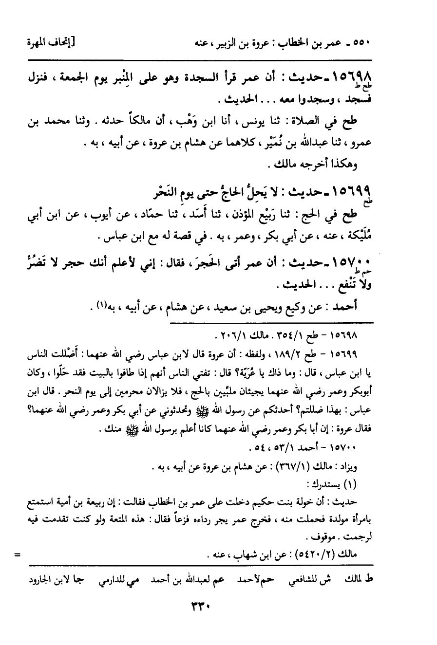 15700 - حديث (حم ط) : أن عمر أتى الحجرَ، فقال: إني لأعلم أنك حجر لا تَضر ولا تَنْفع ... الحديث.
