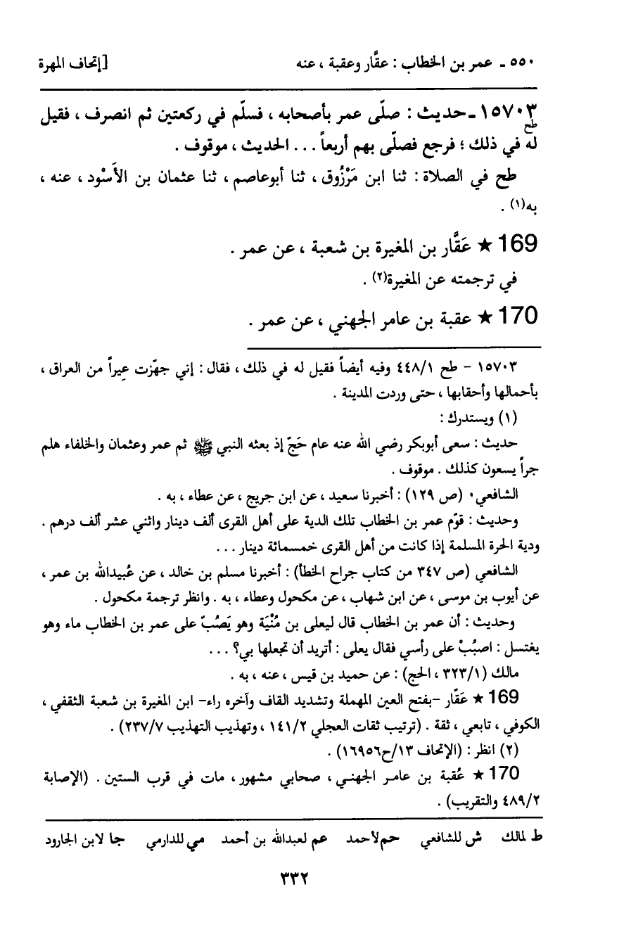 15703 - حديث (طح) : صلّى عمر بأصحابه، فسلّم في ركعتين ثم انصرف، فقيل له في ذلك؛ فرجع فصلّى بهم أربعاً… الحديث، موقوف.