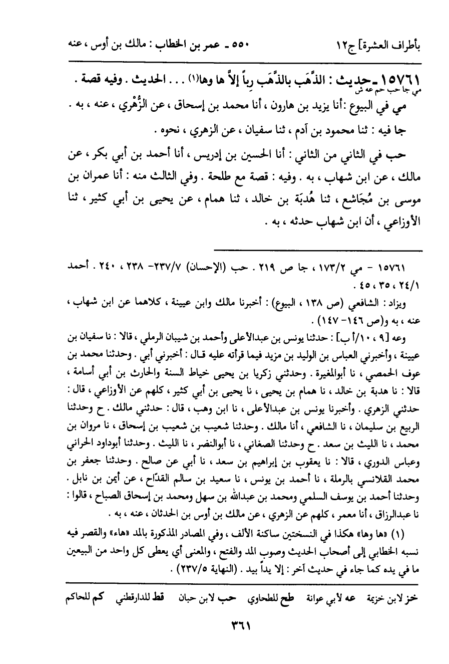 15761 - حديث (مي جا حب حم عه ش) : الذهَب بالذهَب ربا إلاَّ ها وها ... الحديث. وفيه قصة.