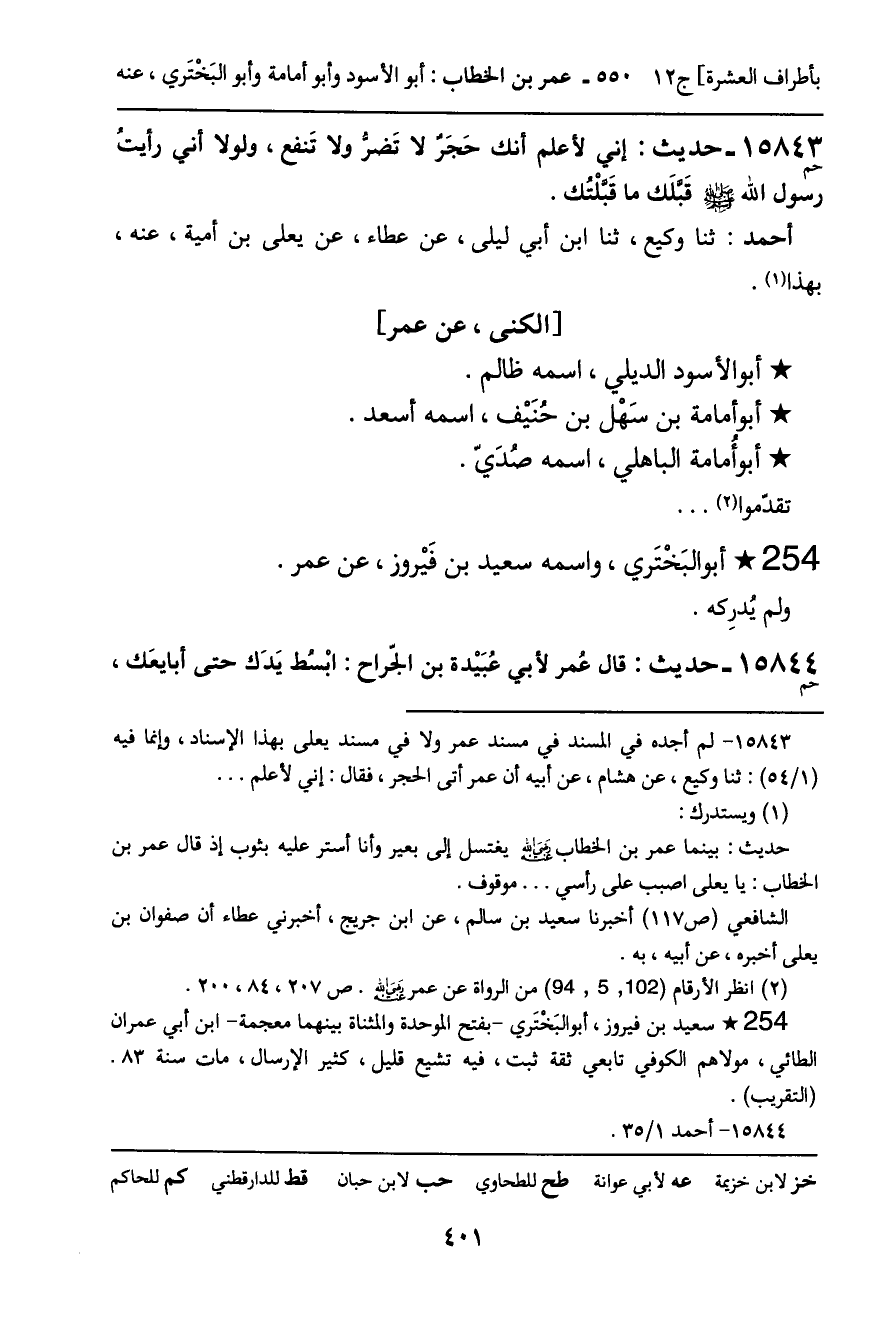 15843 - حديث (حم) : إني لأعلم أنك حَجَرٌ لا تَضرُّ ولا تَنفع، ولولا أني رأيت رسول الله - صَلَّى اللَّهُ عَلَيْهِ وَسَلَّمَ - قبَّلك ما قَبَّلْتُك.