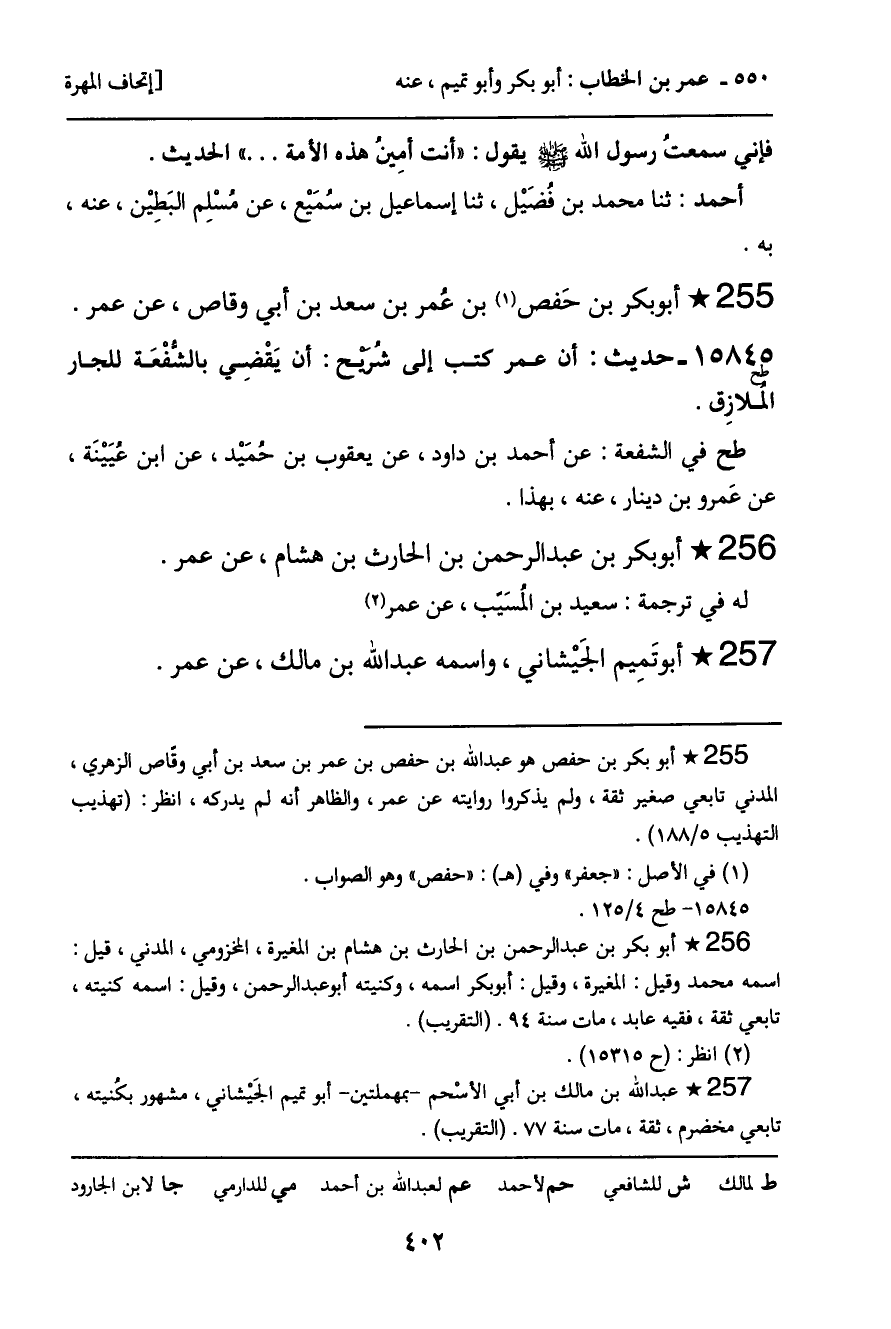 ـ أبو بكر بن حَفص بن عُمر بن سعد بن أبي وقاص، عن عمر.
