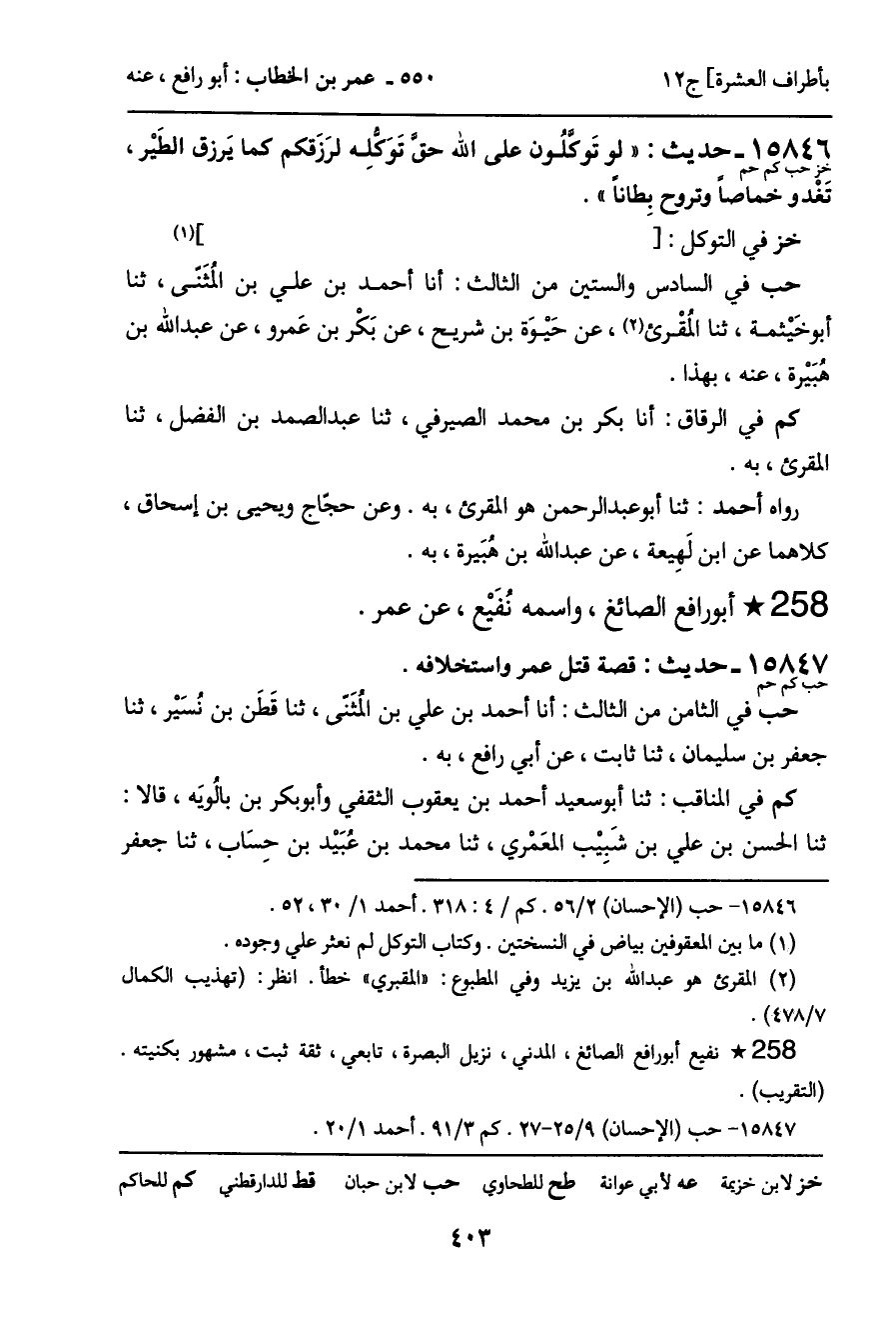 حب في السادس والستين من الثالث: أنا أحمد بن علي بن المُثَنّى، ثنا أبو خَيْثمة، ثنا المُقْرئ، عن حَيْوَة بن شريح، عن بَكْر بن عَمرو، عن عبد الله بن هُبَيْرة، عنه، بهذا.