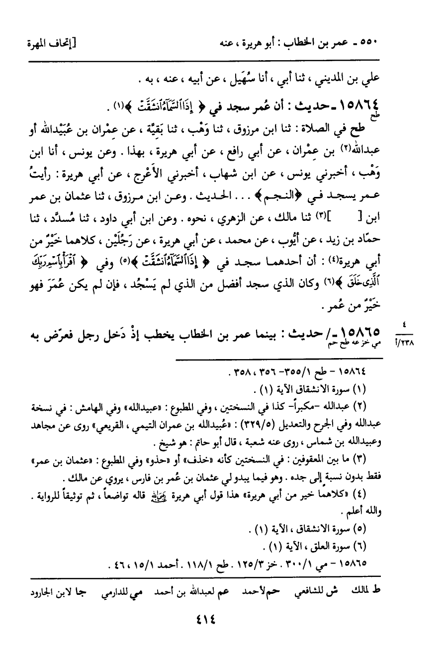 15864 - حديث (طح) : أن عُمر سجد في (إِذَا السَّمَاءُ انْشَقَّتْ) .