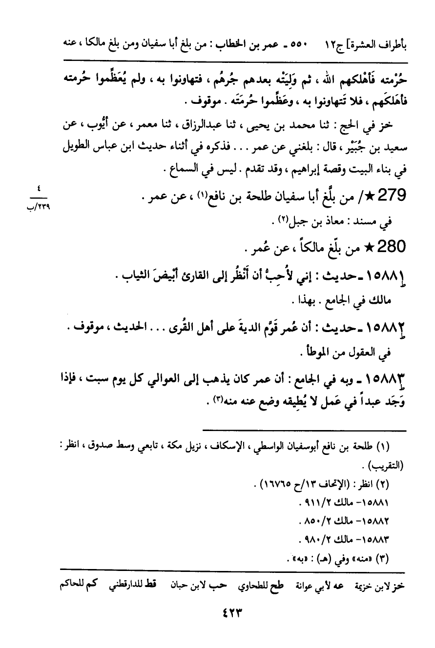 ـ من بلَّغ أبا سفيان طلحة بن نافع، عن عمر.