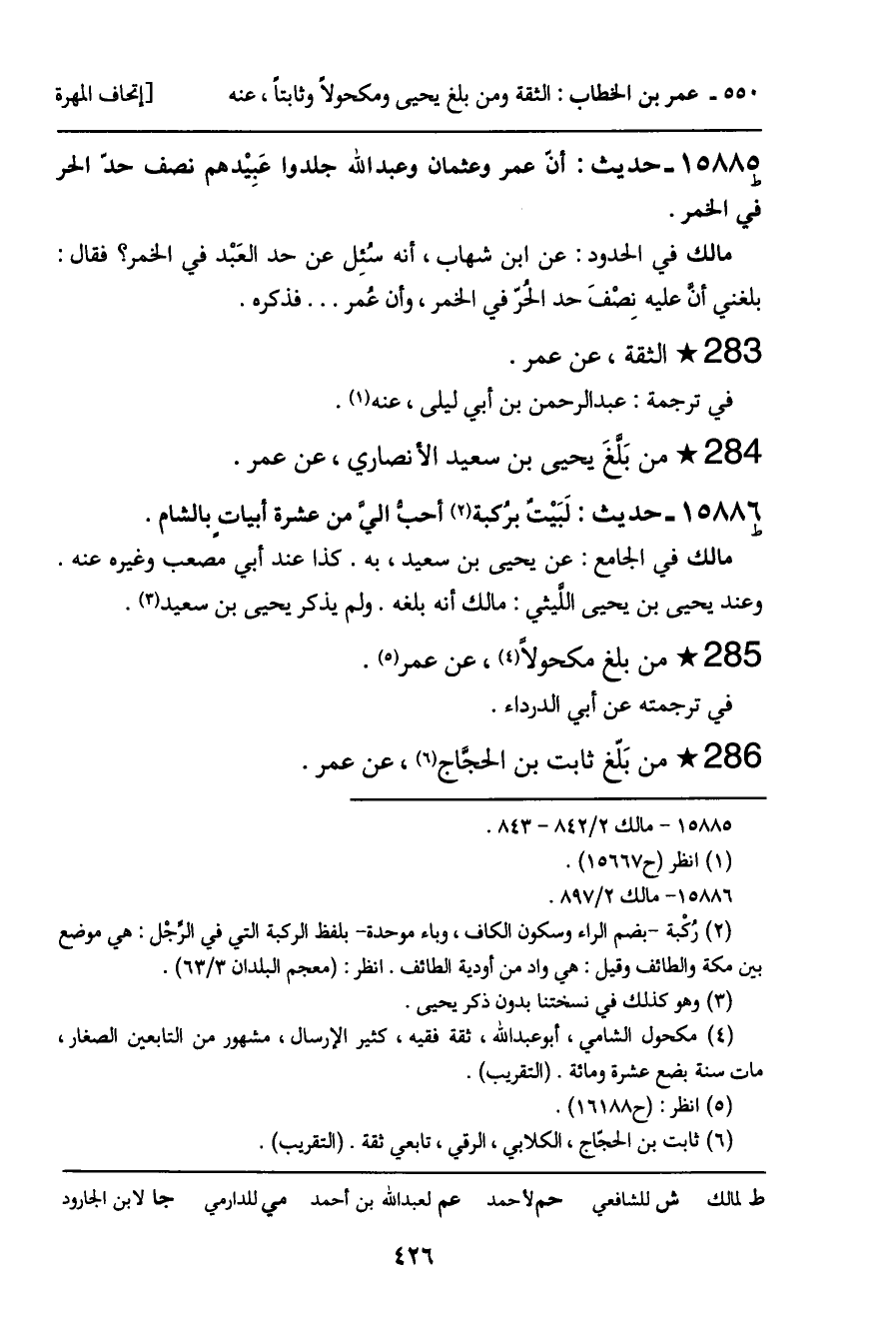 15886 - حديث (ط) : لَبَيْت برُكبة أحب إليَّ من عشرة أبيات بالشام.