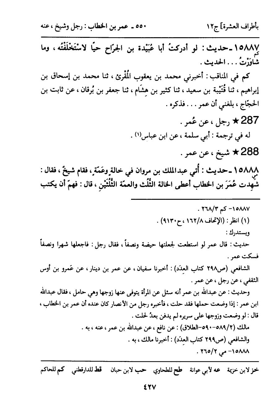 15888 - حديث (مي) : أتي عبد الملك بن مروان في خالة وعَمة، فقام شيخٌ، فقال: شَهِدت عمَرَ بن الخطاب أعطى الخالة الثلث والعمّة الثلُثَيْنِ، قال: فهمّ أن يكتب