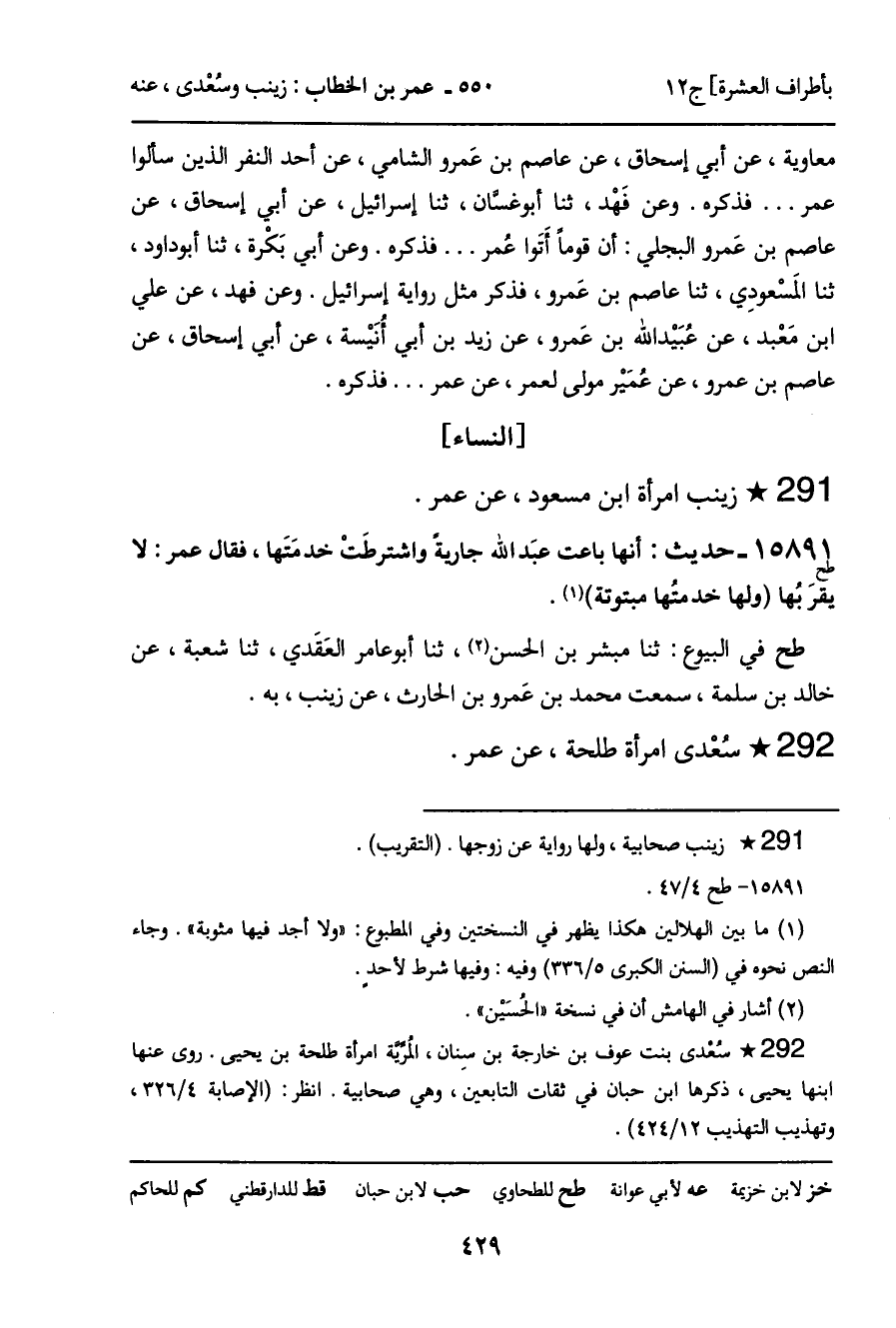 ـ زينب امرأة ابن مسعود، عن عمر.