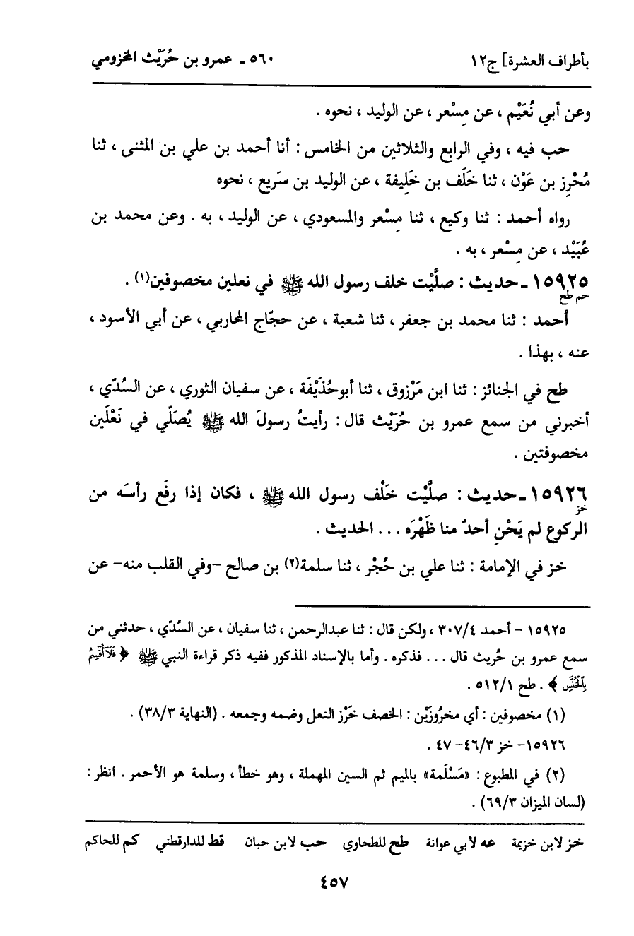 15925 - حديث (حم طح) : صلَّيْت خلف رسول الله - صَلَّى اللَّهُ عَلَيْهِ وَسَلَّمَ - في نعلين مخصوفين.