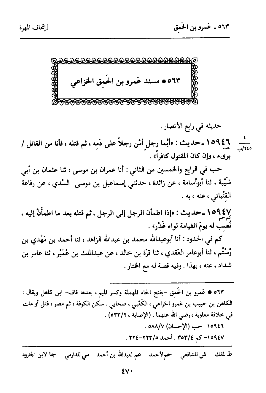 563 ـ مسند عمرو بن الحمِق الخزاعي
