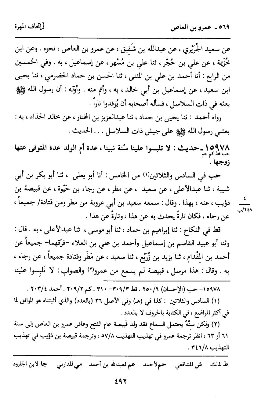15978 - حديث (حب قط كم حم) : لا تلبسوا علينا سُنة نبينا، عدة أم الولد عدة المتوفى عنها زوجها.