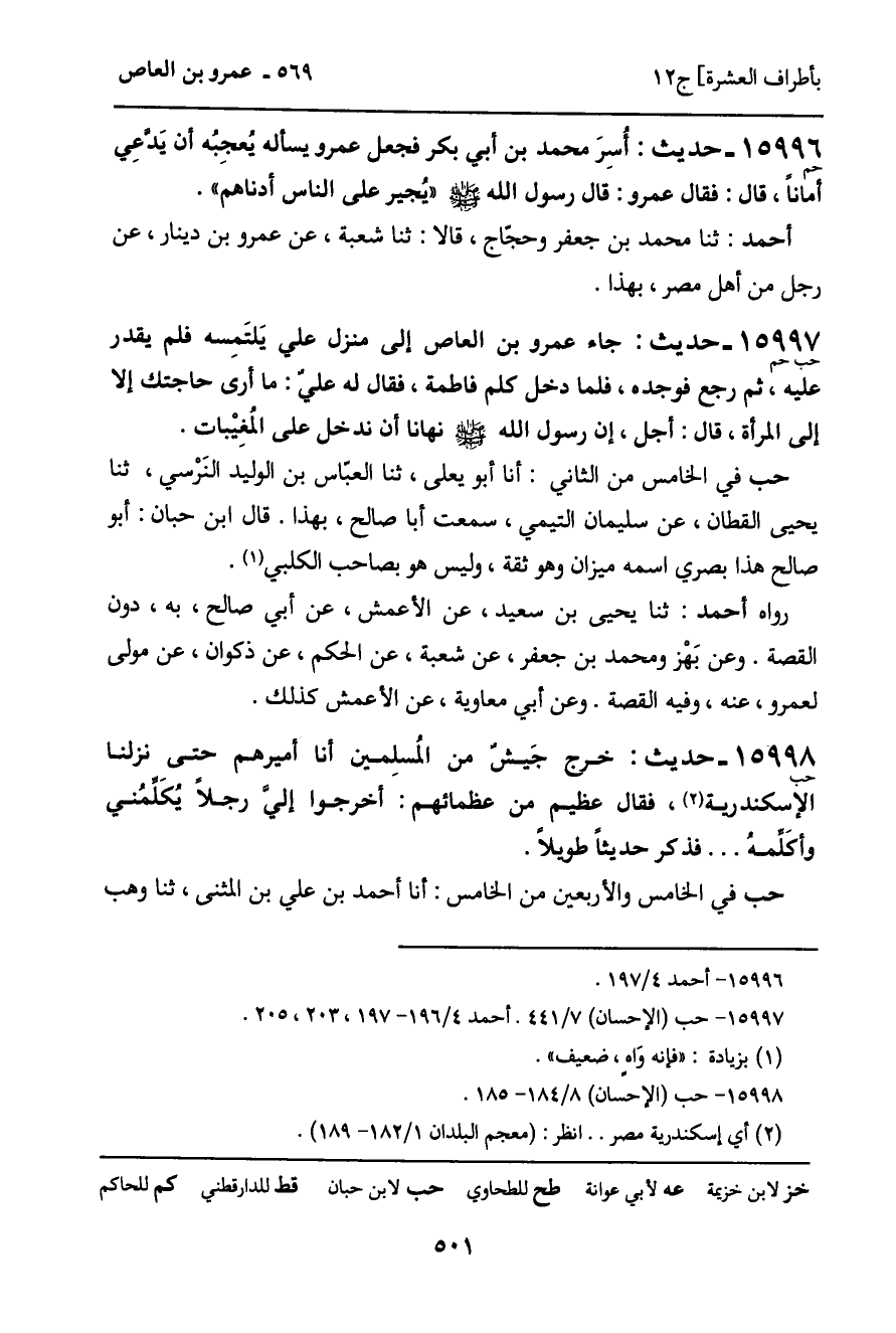 -[502]- ابن بَقِية، أنا خالد، عن محمد بن عمرو، عن أبيه، عن جده، قال: قال عمرو بن العاص ... به.