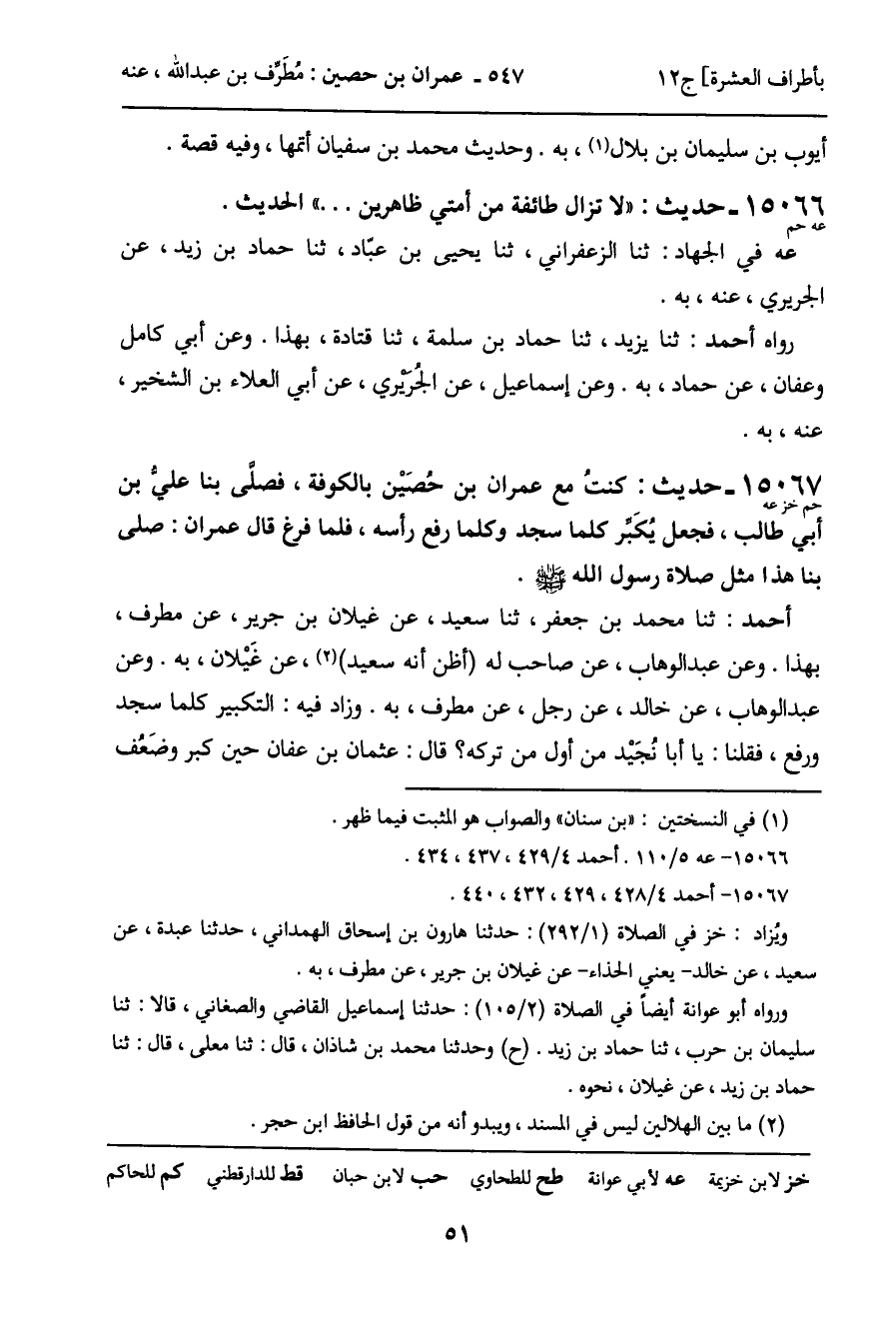 رواه أحمد: ثنا يزيد، ثنا حماد بن سلمة، ثنا قتادة، بهذا. وعن أبي كامل وعفان، عن حماد، به. وعن إسماعيل، عن الجُريري، عن أبي العلاء بن الشخير، عنه, به.