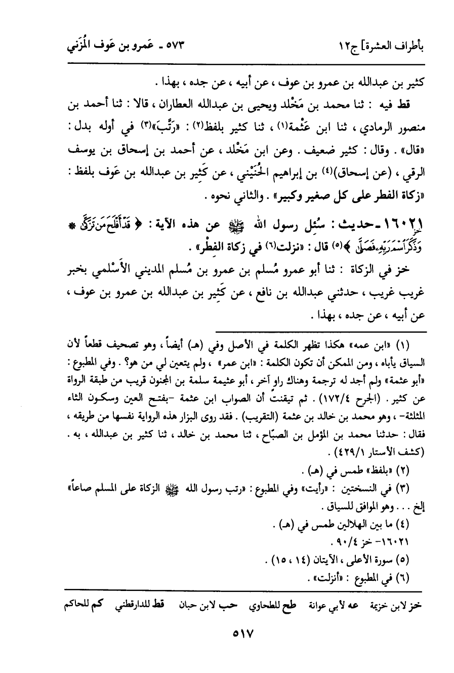 خز في الزكاة: ثنا أبو عمرو مسلم بن عمرو بن مُسلم المديني الأَسْلمي بخبر غريب غريب، حدثني عبد الله بن نافع، عن كَثِير بن عبد الله بن عمرو بن عوف، عن أبيه، عن جده، بهذا.