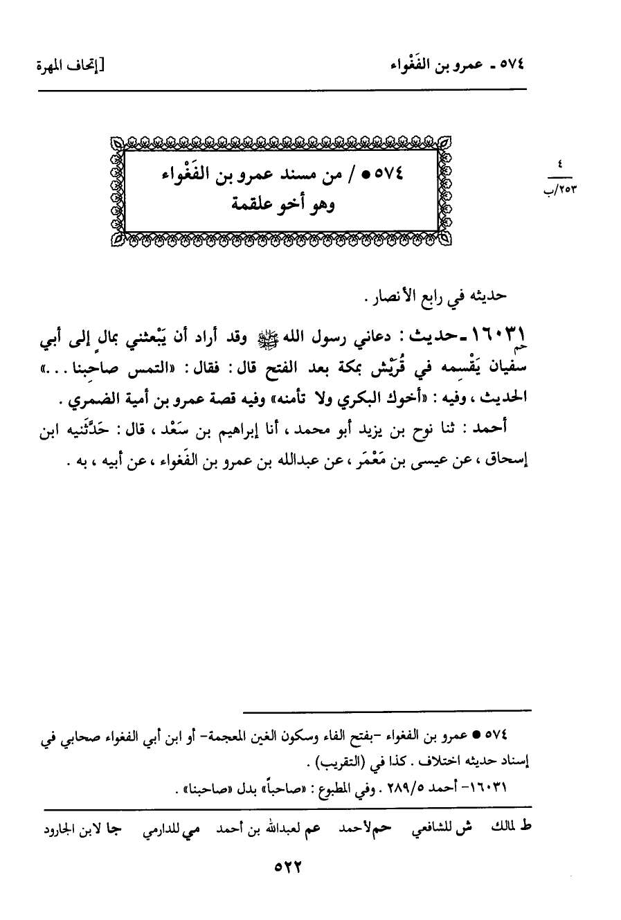 574 ـ من مسند عمرو بن الفَغْواء وهو أخو علقمة