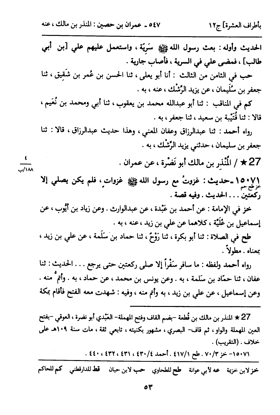 15071 - حديث (خز طح حم) : غزوتُ مع رسول الله غزوات، فلم يكن يصلى إلا ركعتين ... الحديث. وفيه قصة.