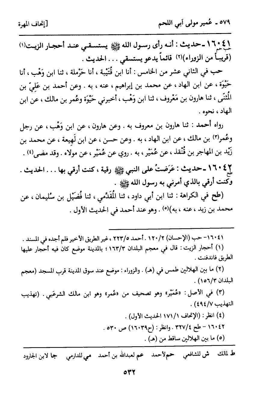 16041 - حديث (حب حم) : أنه رأى رسول الله - صَلَّى اللَّهُ عَلَيْهِ وَسَلَّمَ - يستسقي عند أحجار الزيت (قريبا من الزوراء) قائماً يدعو يستسقي ... الحديث.