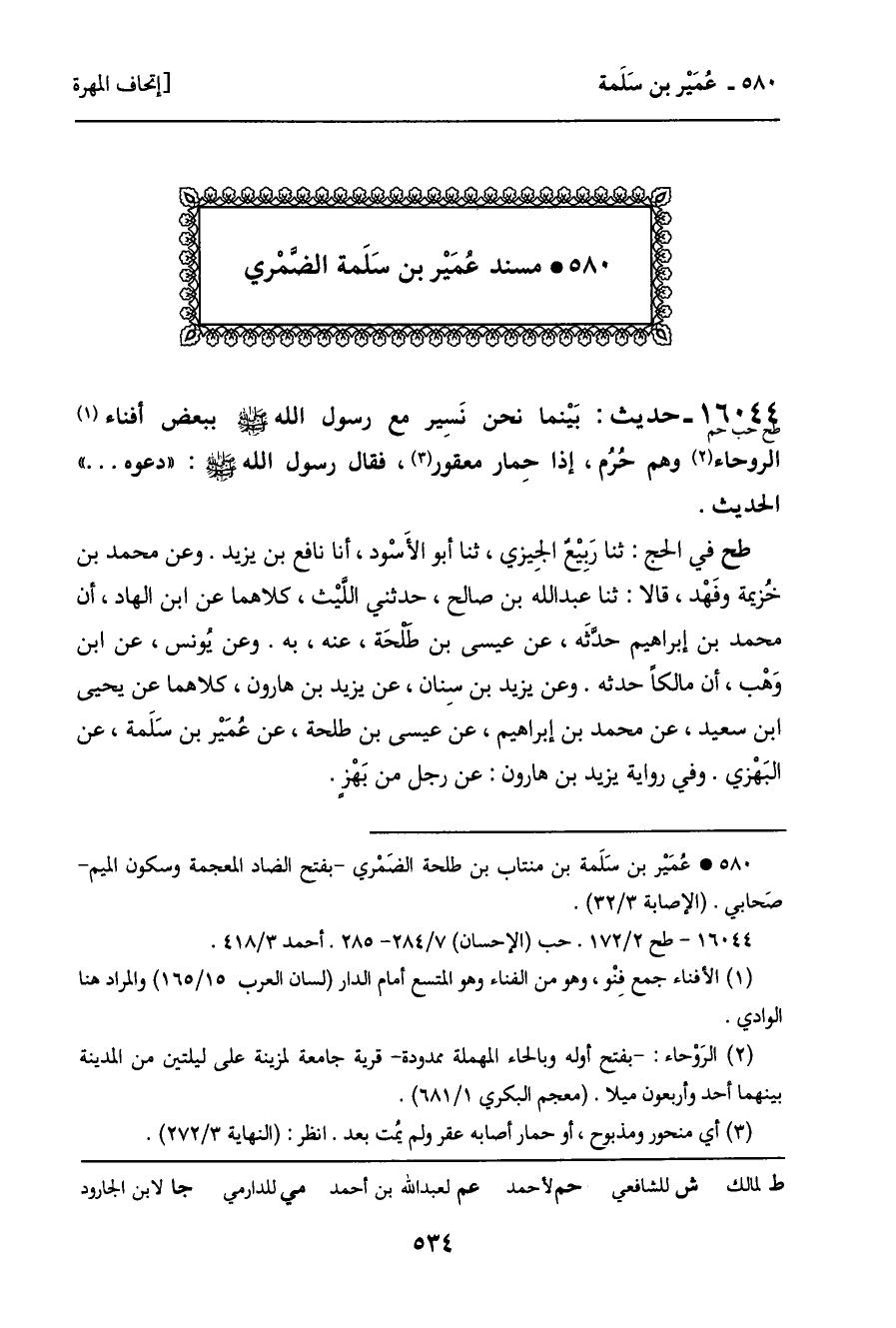 580 ـ مسند عُمَيْر بن سَلَمة الضمري