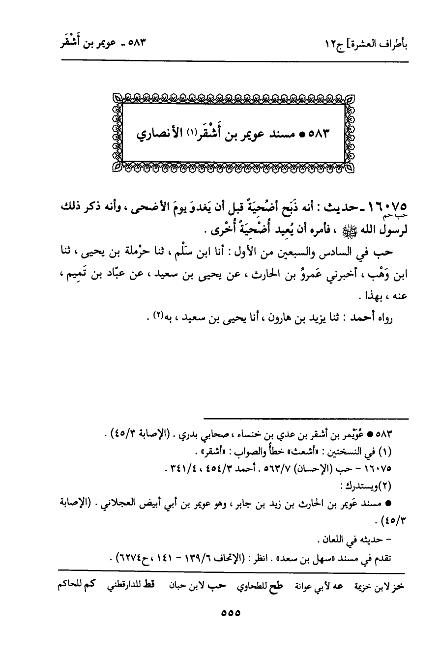583 ـ مسند عويمر بن أشقر الأنصاري