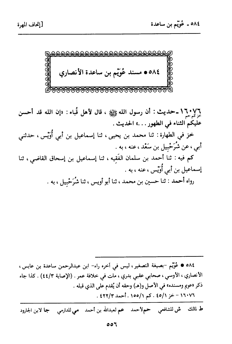 584 ـ مسند عُوَيْم بن ساعدة الأنصاري