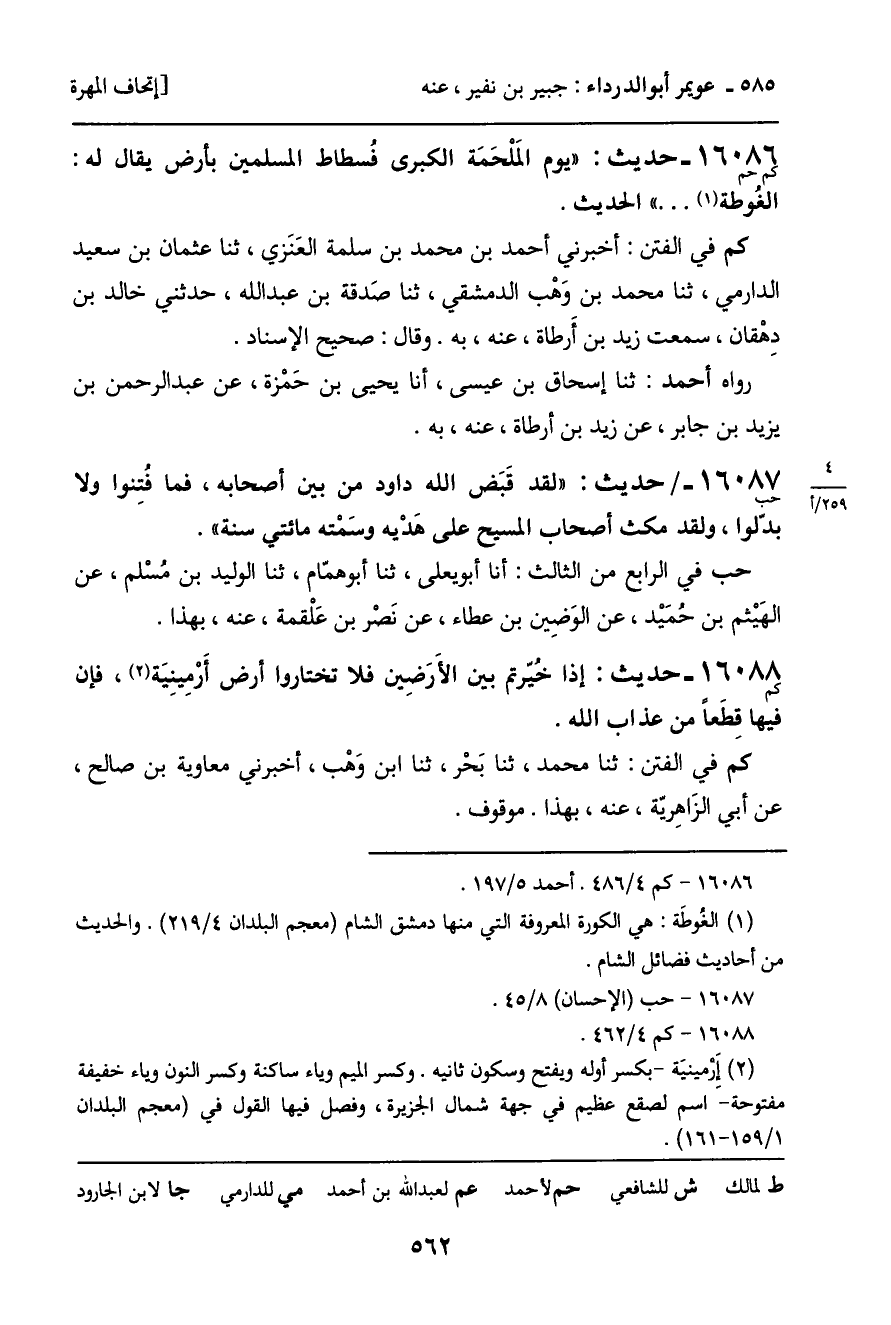 16086 - حديث (كم حم) : "يوم المَلْحَمَة الكبرى فُسطاط المسلمين بأرض يقال له: الغُوطة ... " الحديث.