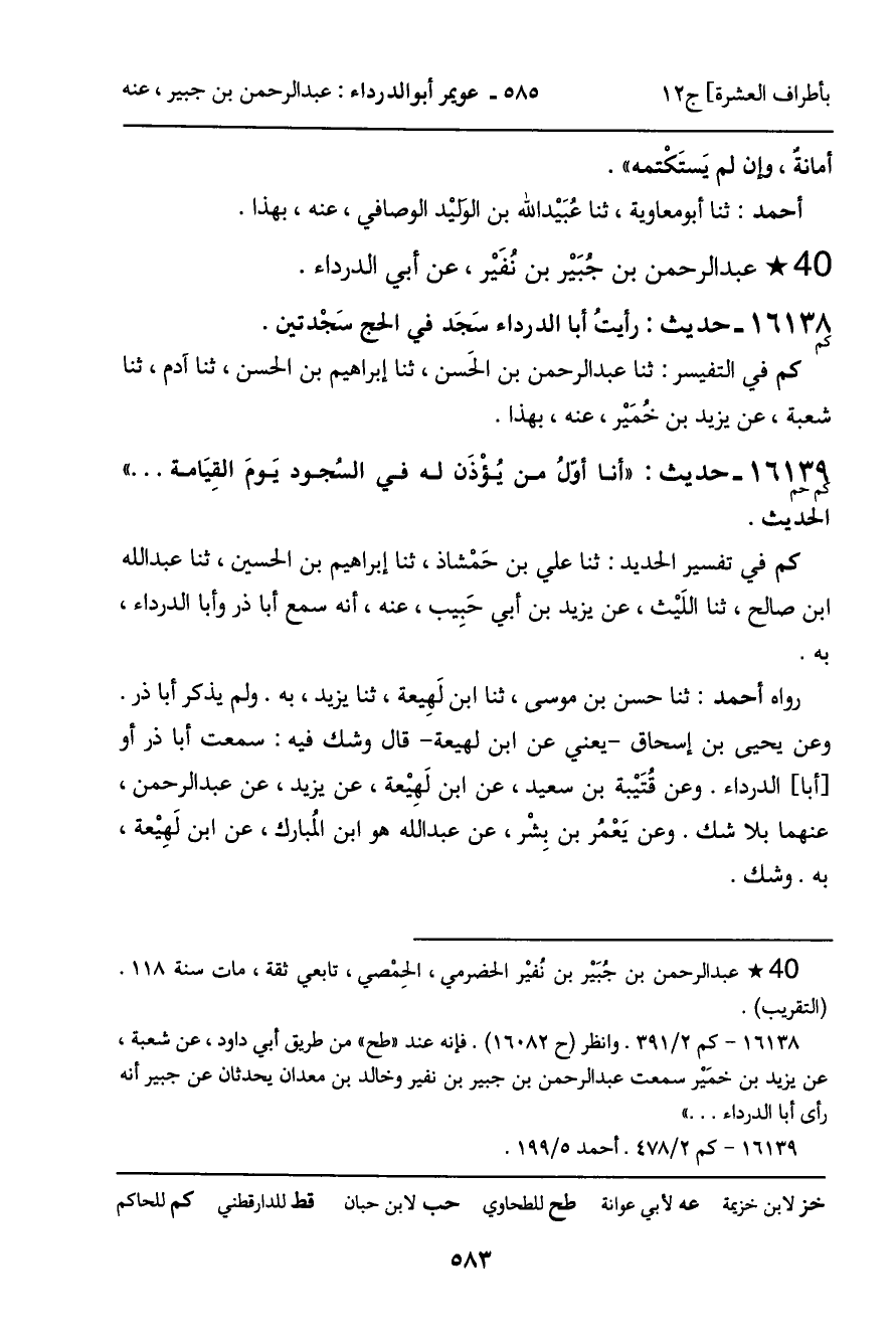 16138 - حديث (كم) : رأيت أبا الدرداء سَجد في الحج سَجْدتين.
