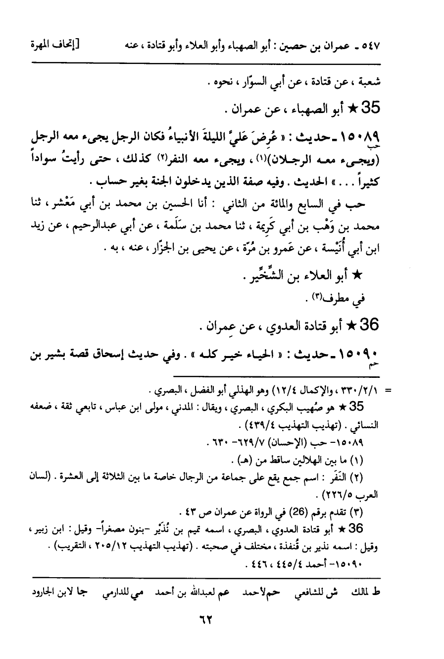 15090 - حديث (حم) : "الحياء خير كله". وفي حديث إسحاق قصة بشير بن
