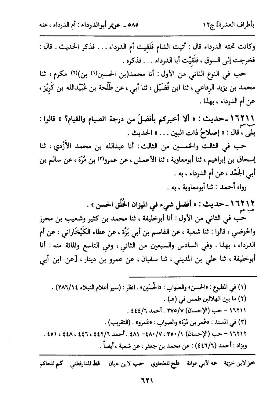16211 - حديث (حب حم) : "ألا أخبركم بأفضلَ من درجة الصيام والقيام؟ " قالوا: بلى، قال: "إصلاحُ ذات البين…" الحديث.