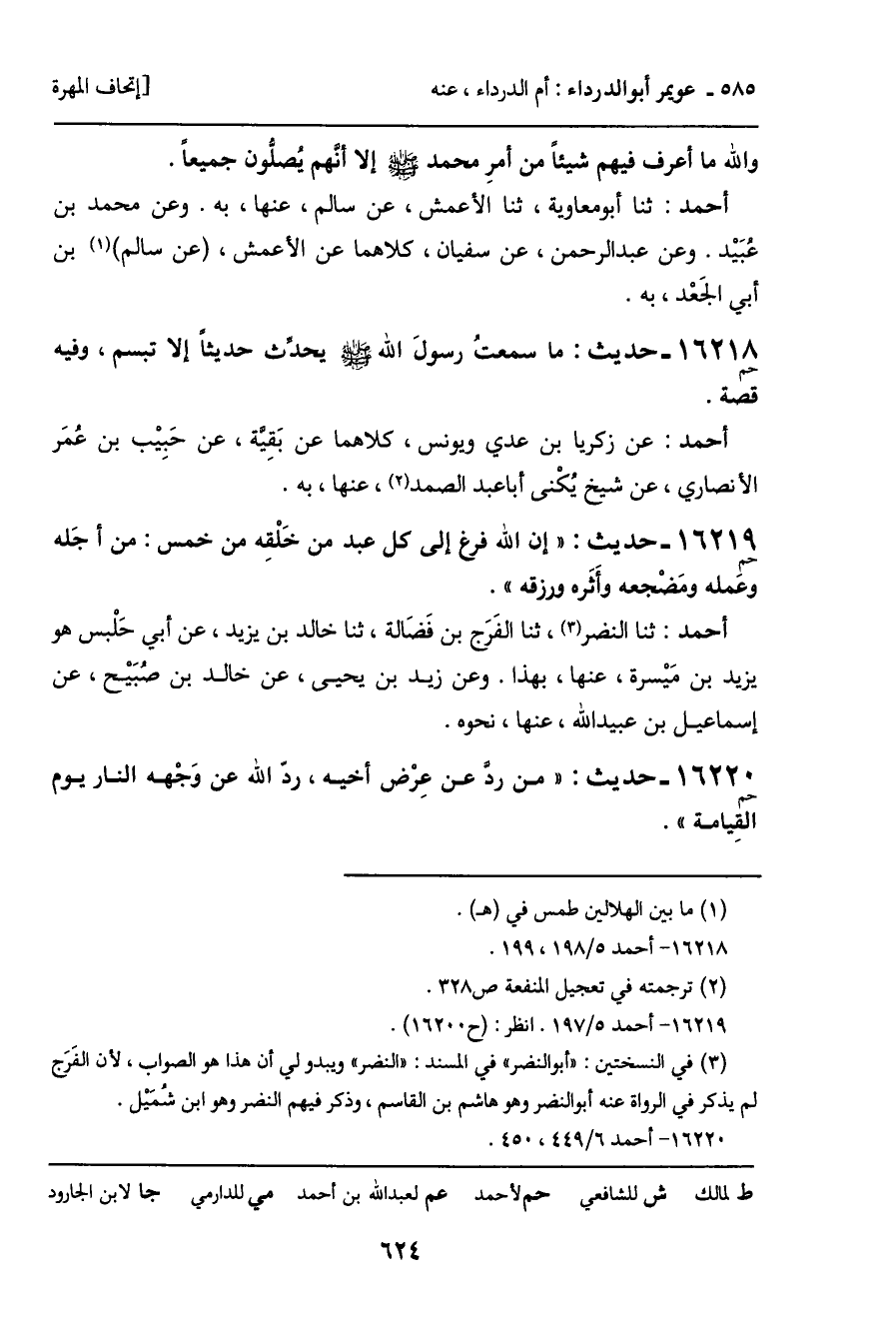 16220 - حديث (حم) : "من ردَّ عن عِرْض أخيه، ردّ الله عن وَجْهه النار يوم القِيامة".
