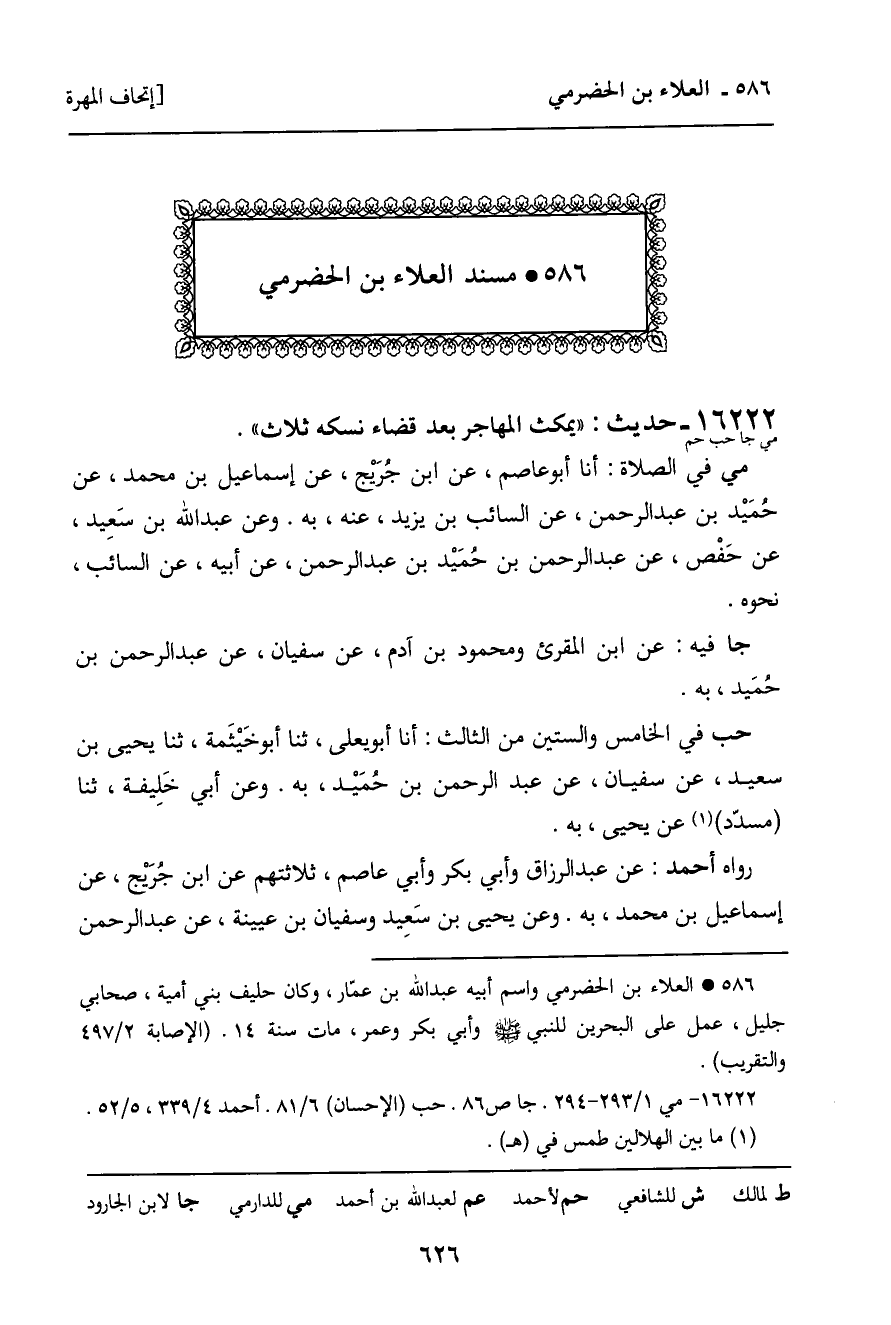 16222 - حديث (مي جا حب حم) : "يمكث المهاجر بعد قضاء نسكه ثلاث".