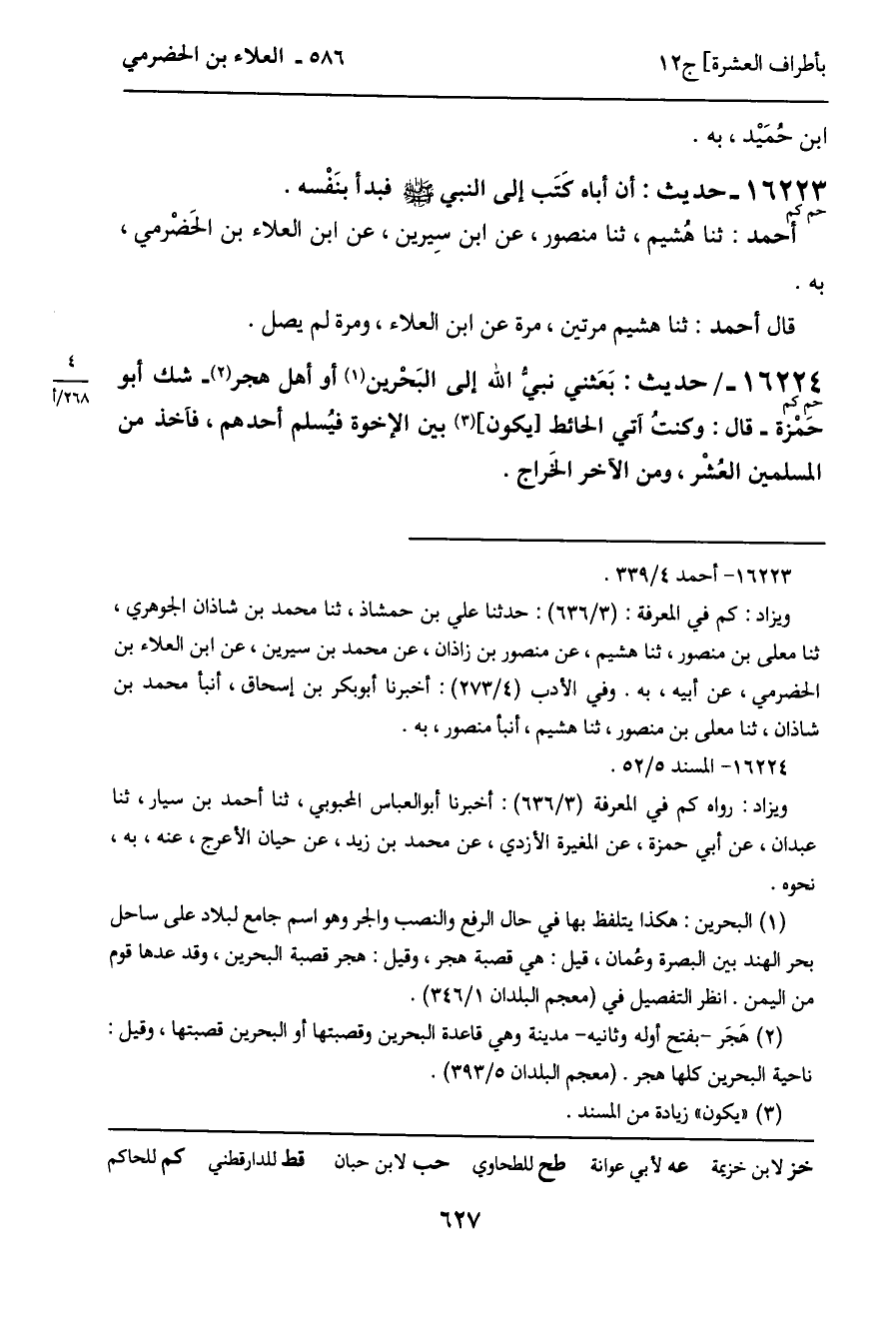 16224 - حديث (حم كم) : بَعَثني نبي الله إلى البَحْرين أو أهل هجر - شك أبو حَمْزة - قال: وكنت آتي الحائط [يكون] بين الإخوة فيُسلم أحدهم، فآخذ من المسلمين العُشْر، ومن الآخر الخَراج.