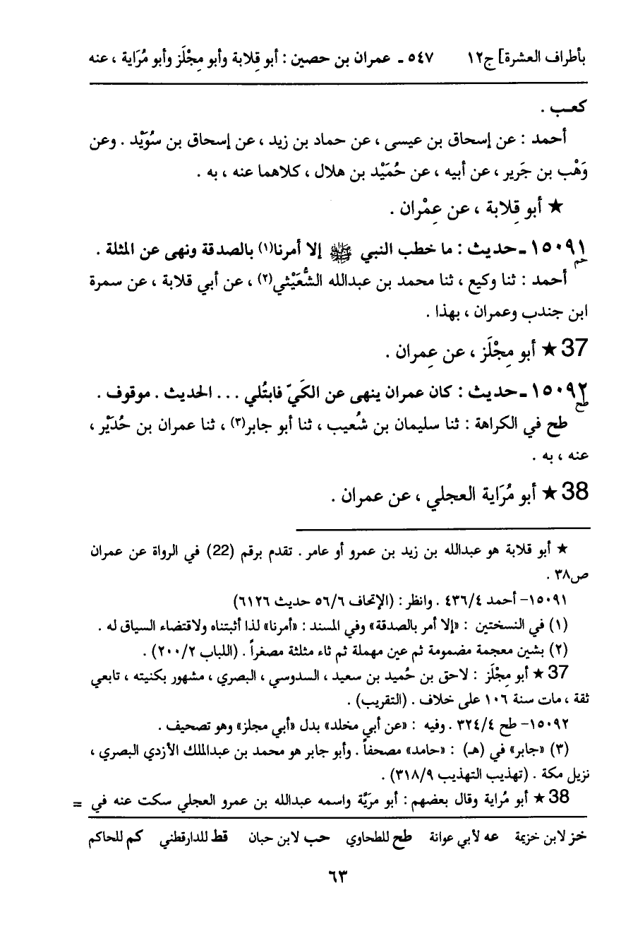15092 - حديث (طح) : كان عمران ينهى عن الكَي فابتُلي ... الحديث. موقوف.