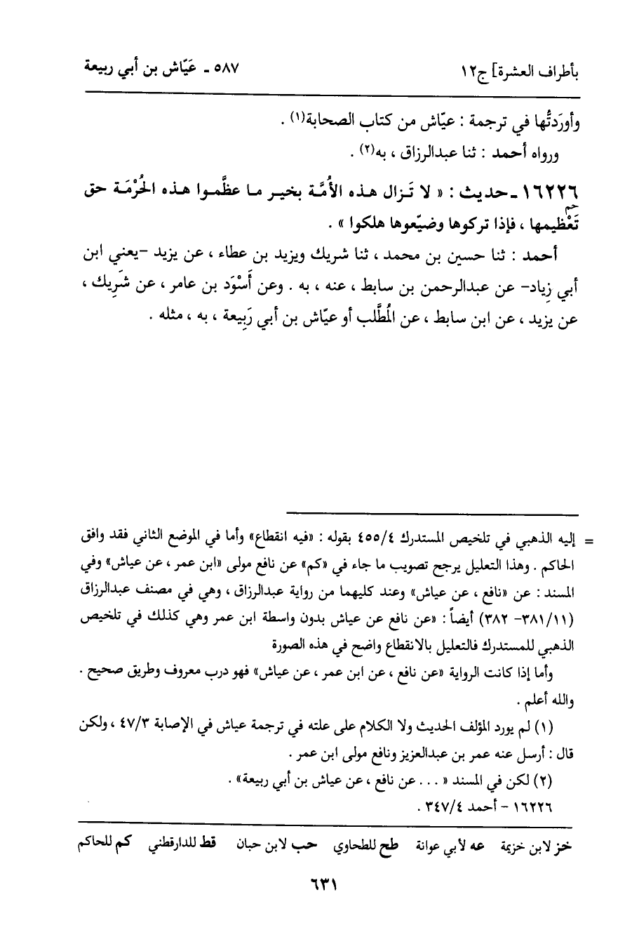 16226 - حديث (حم) : "لا تَزال هذه الأُمَّة بخير ما عظَّموا هذه الحُرْمَة حق تَعْظيمها، فإذا تركوها وضيْعوها هلكوا".
