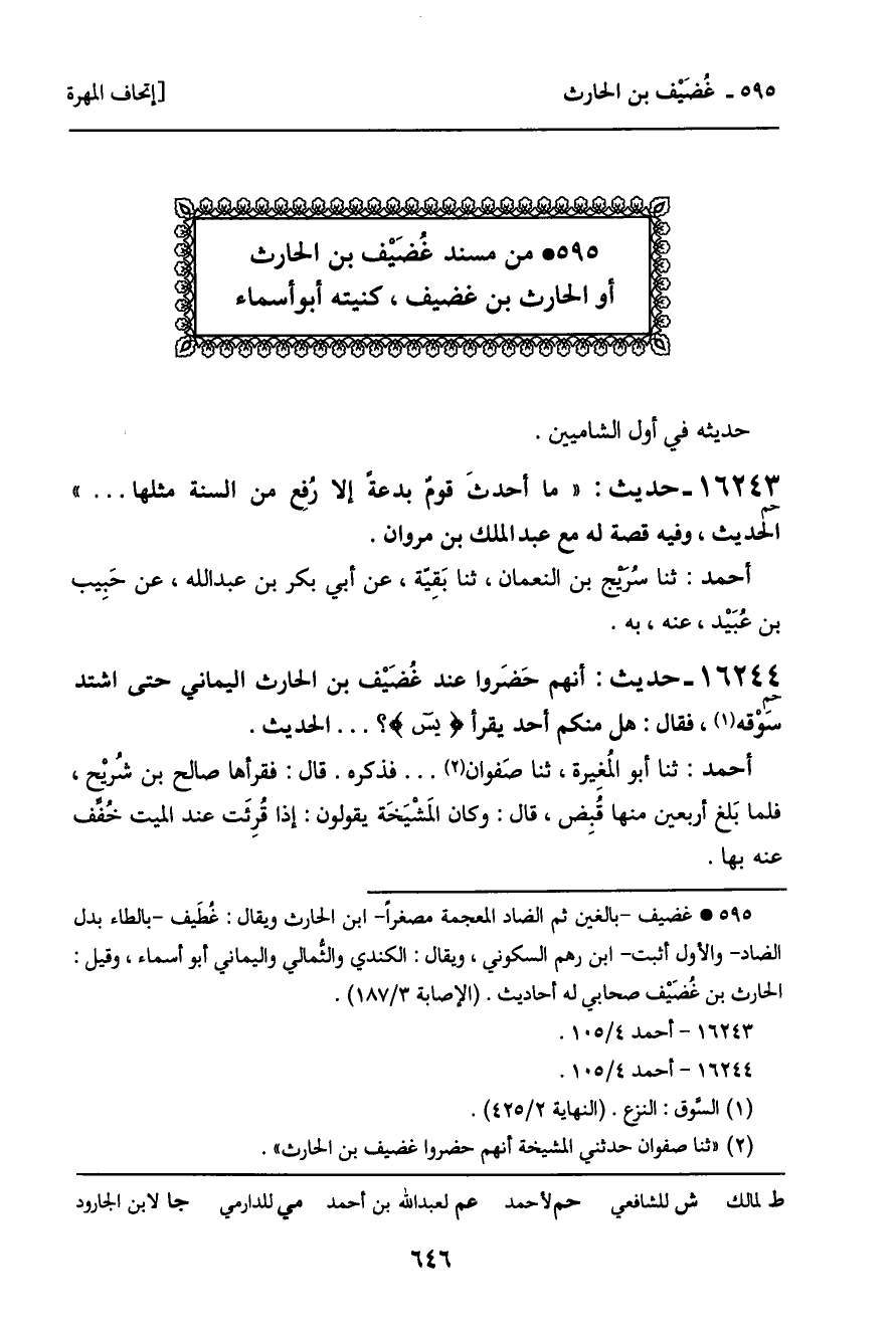 595 ـ من مسند غضيْف بن الحارث أو الحارث بن غضيف, كنيته أبو أسماء