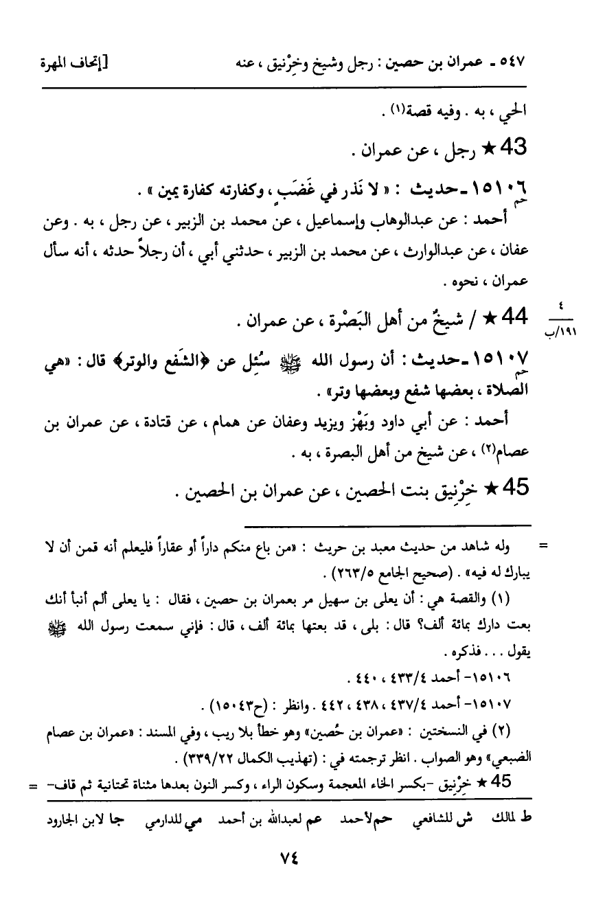 أحمد: عن عبد الوهاب وإسماعيل، عن محمد بن الزبير، عن رجل، به. وعن عفان، عن عبد الوارث، عن محمد بن الزبير، حدثني أبي، أن رجلاً حدثه، أنه سأل عمران، نحوه.